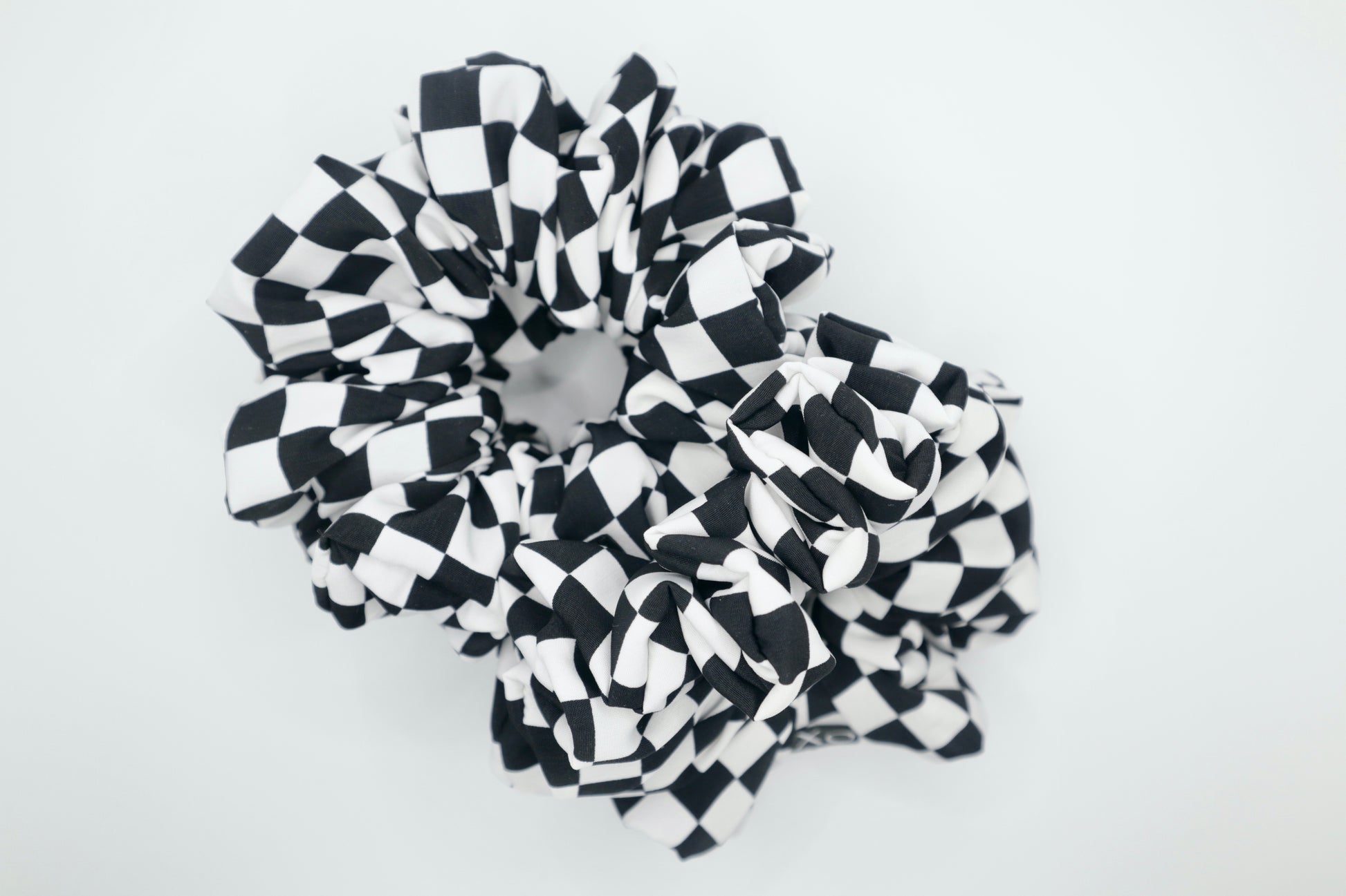 With its versatile checkered design, this XL peachskin scrunchie wraps twice for stylish hold. Elevate your holiday look with Xo Scrunchies handmade elegance.