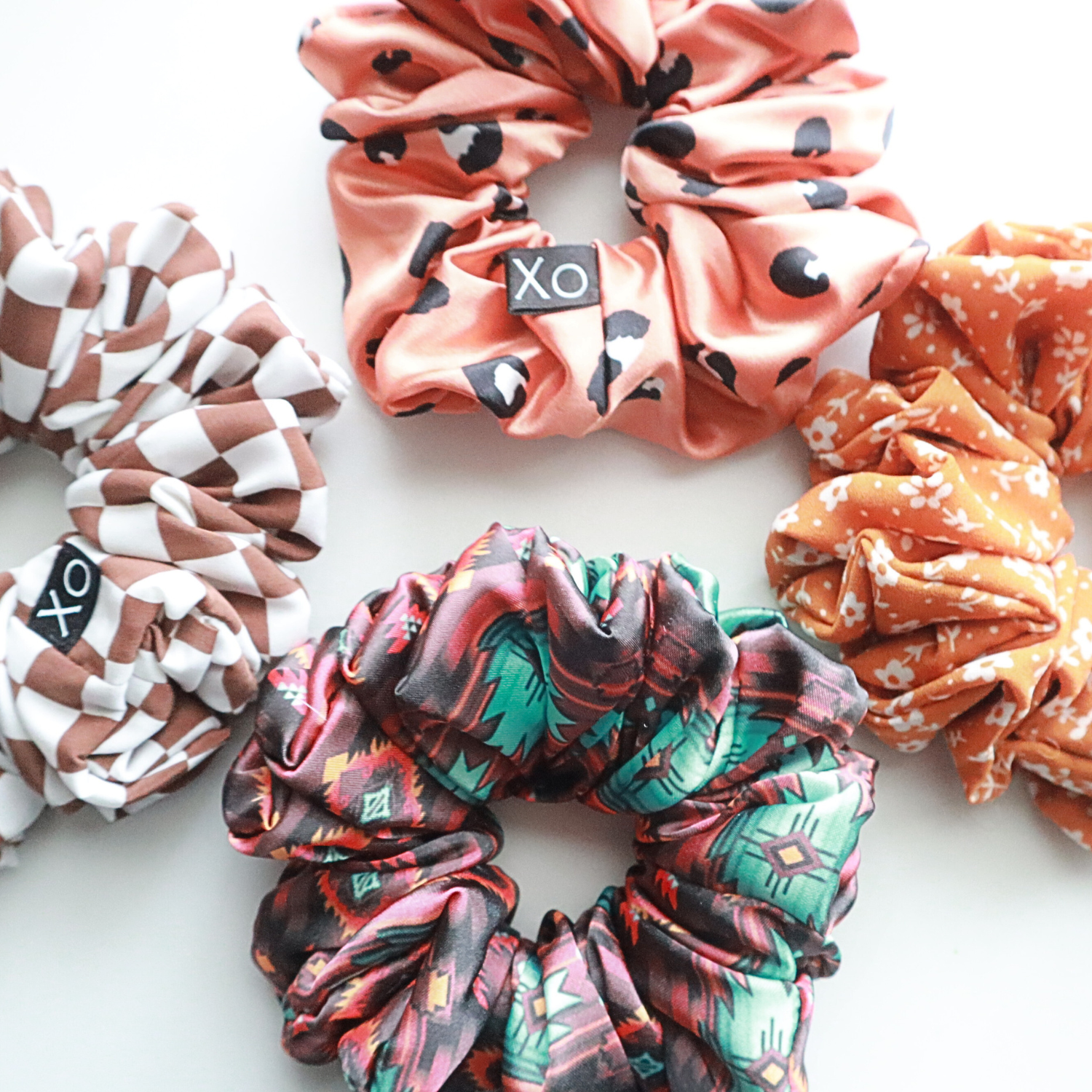 Kai Oversized Scrunchie • Brown Satin Aztec Design ♡🏜️