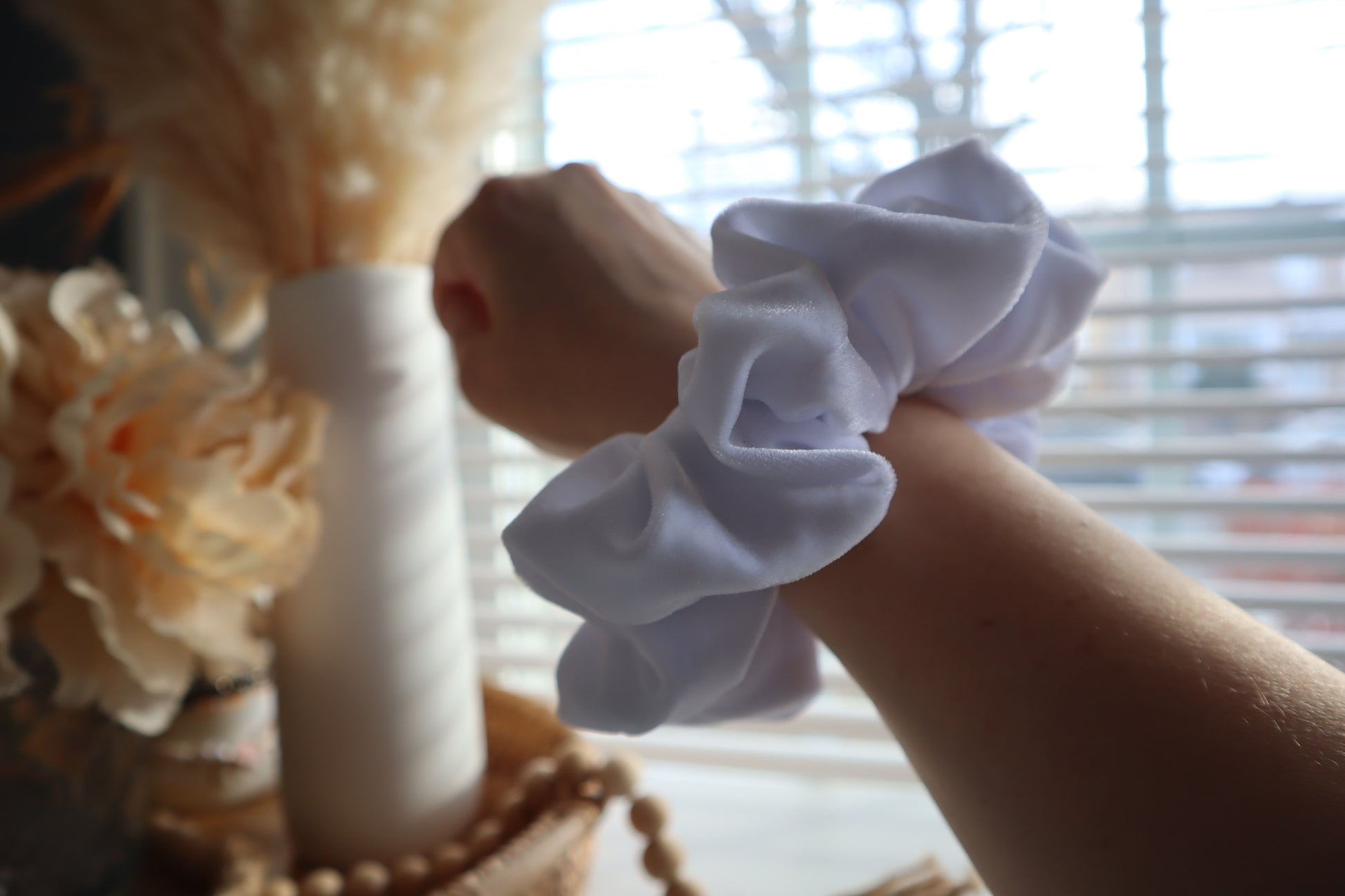 Treat your hair to pure, crisp elegance with Bianca – the brightest winter-white velvet scrunchie that looks stunning against every hair color. Handmade in the USA with ultra-soft regular velvet from small U.S. fabric shops, this gentle hair tie prevents breakage, creases, and ponytail headaches while staying perfectly fluffy wash after wash.