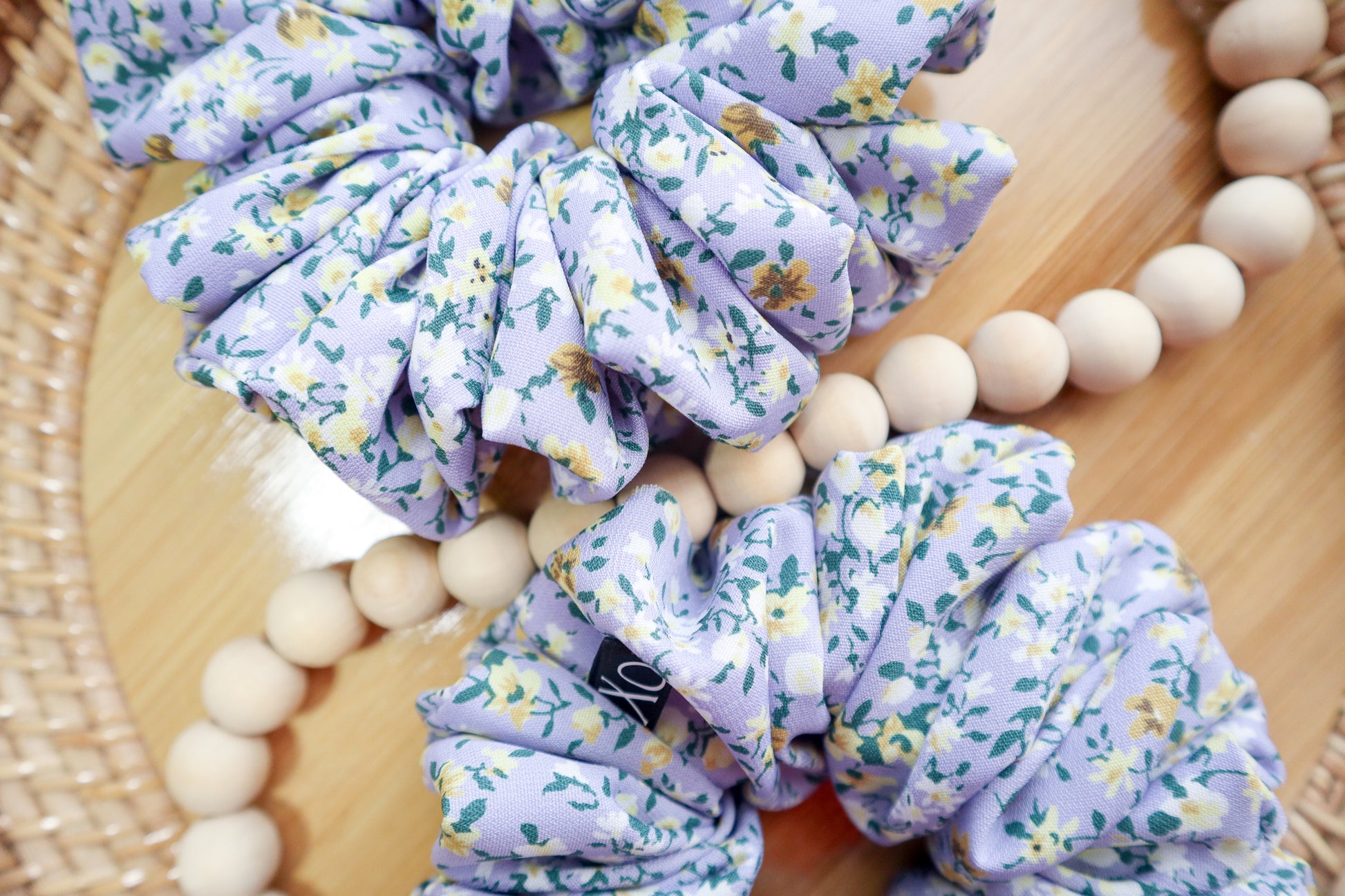 Hallie Oversized Scrunchie • Light Purple Dainty Floral Wool Peach ♡💜