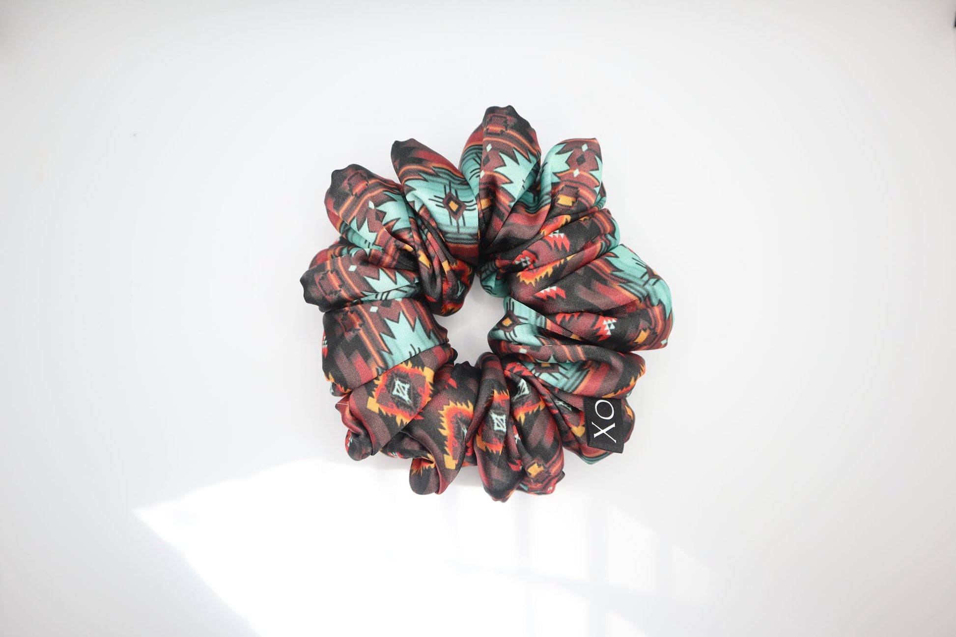 Kai Oversized Scrunchie • Brown Satin Aztec Design ♡🏜️