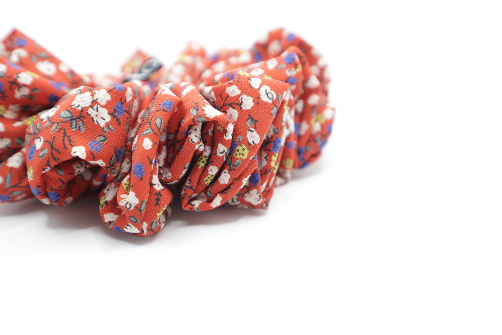 Meet Lila, your new go-to statement scrunchie in a soft red floral print that radiates charm and confidence. Handcrafted from breathable wool peach fabric, this oversized beauty wraps around your hair 2–3 times for effortless hold and curl-friendly comfort. Whether you’re dressing up or keeping it casual, Lila adds a touch of handcrafted love to every look.