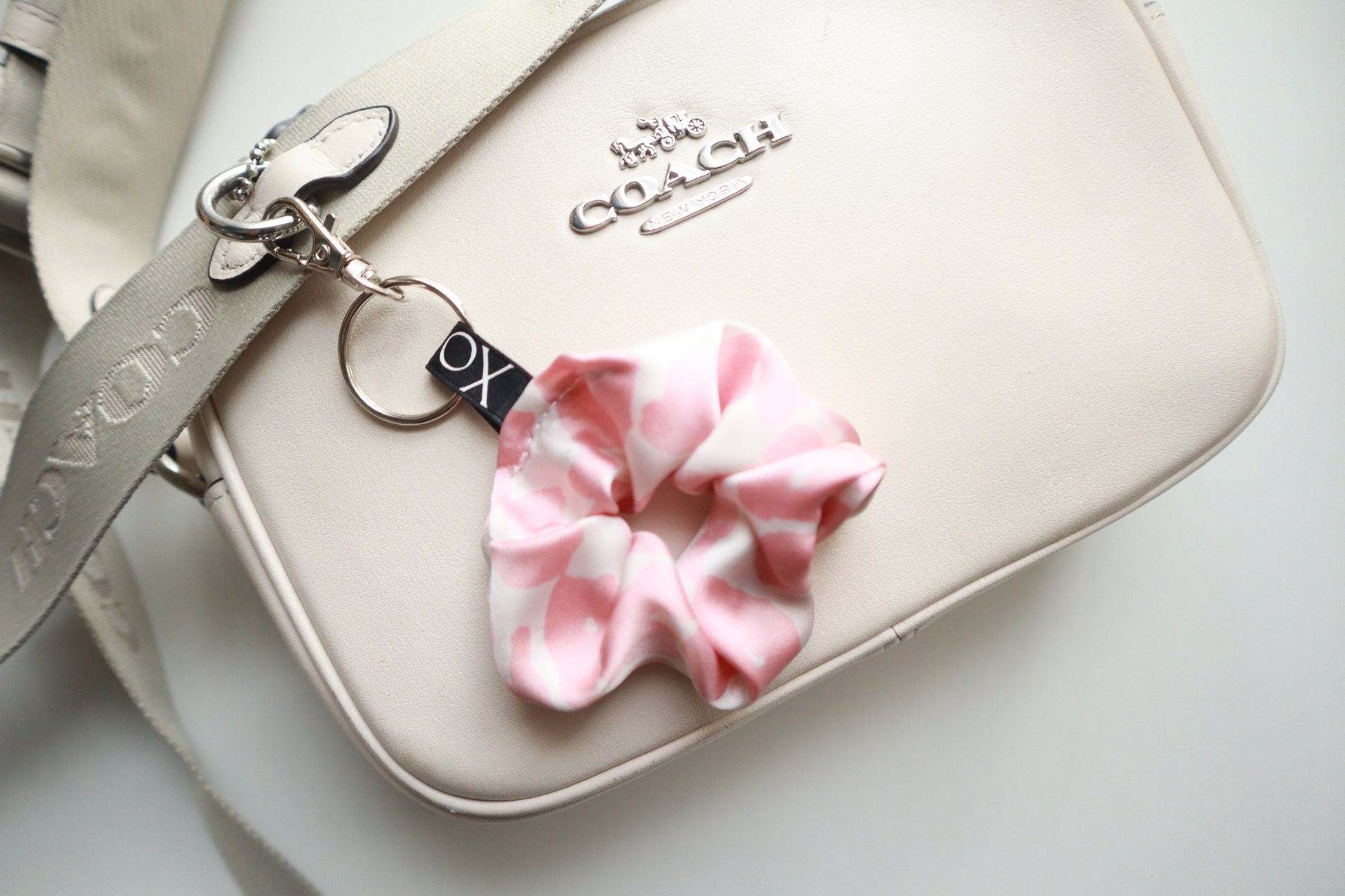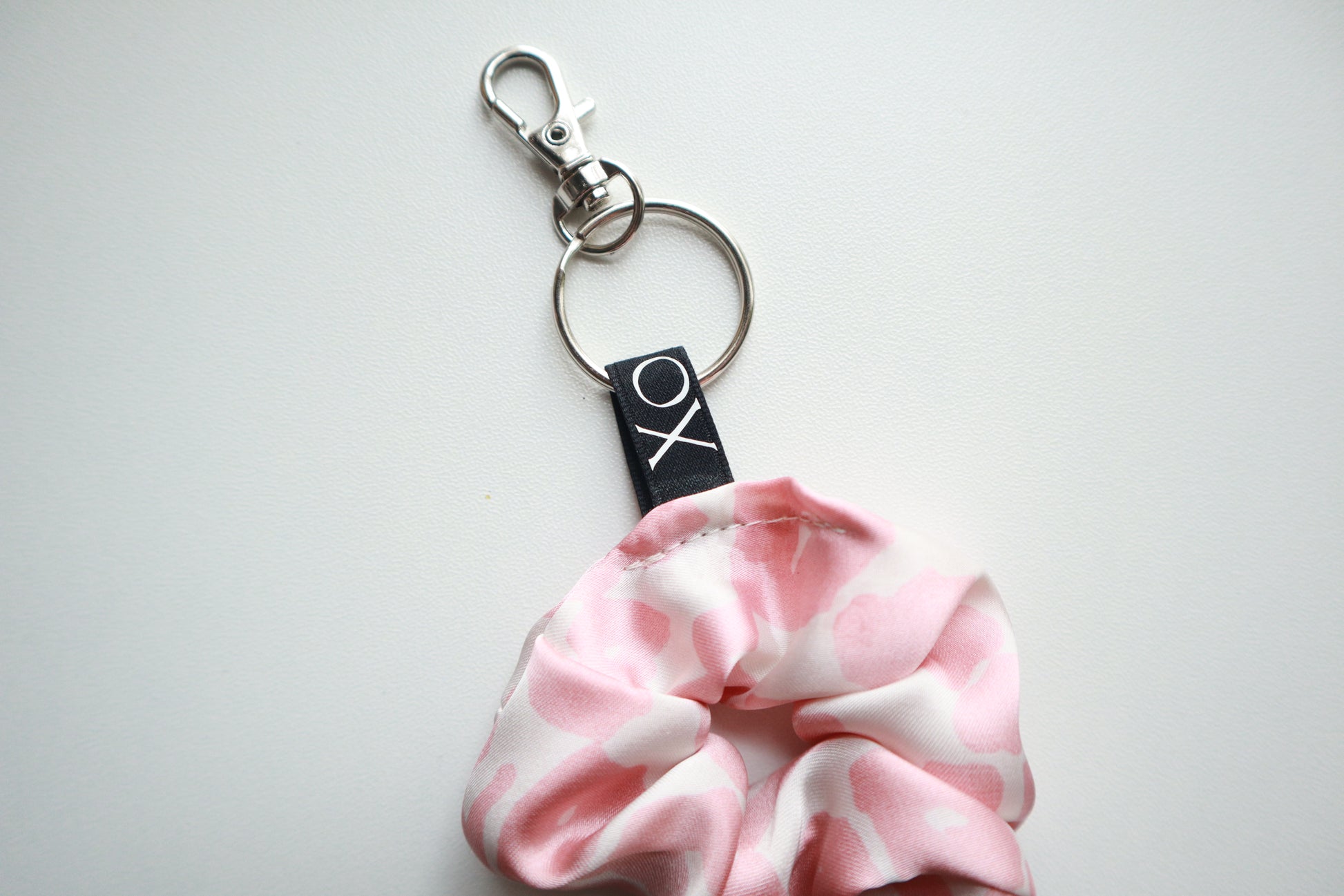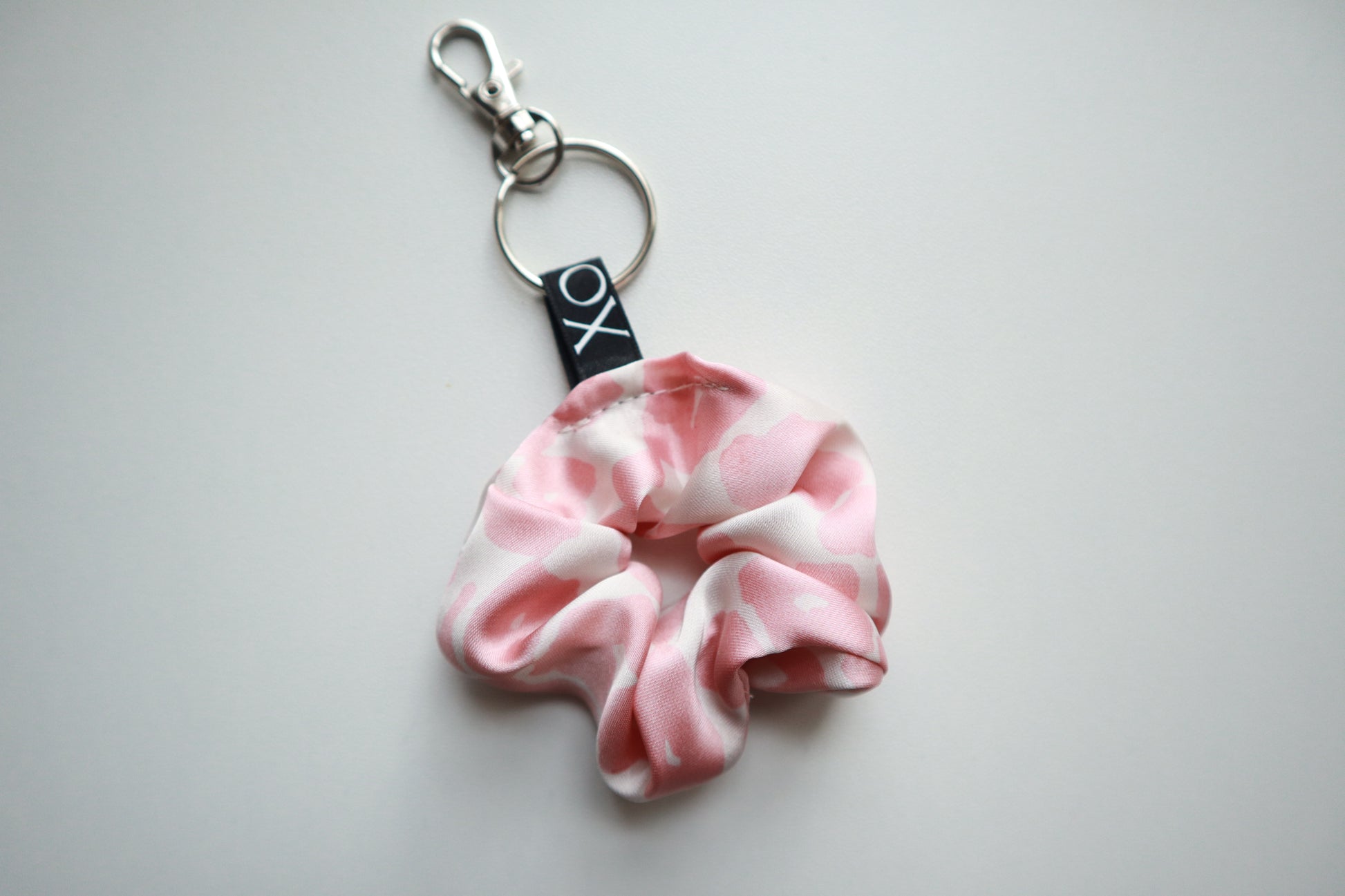 Scrunchie Bag Charms Keychain - Satin Leopard Print with Key Ring & Clamp (Baby Pink or Light Sage) 🌸